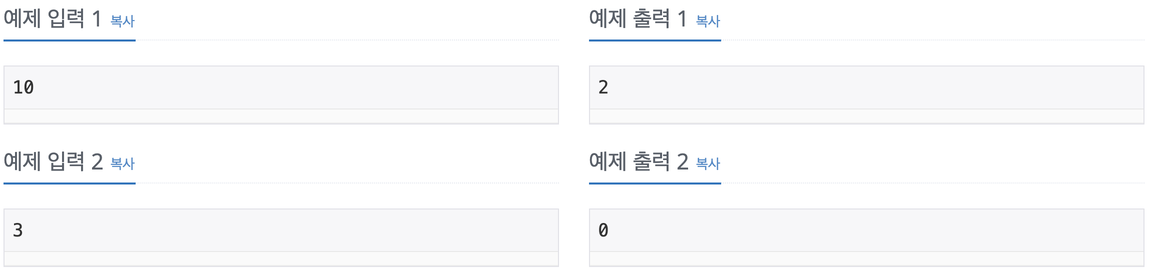 N!에서 뒤에서부터 처음 0이 아닌 숫자가 나올 때까지 0의 개수를 구하는 프로그램을 작성하시오.